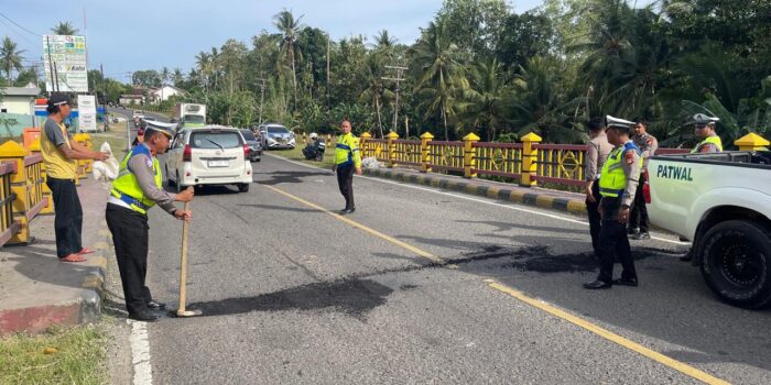 Polantas Bone Gandeng Dinas PU Tambal Jalan Berlubang di Hari Ke-14 Ops Keselamatan 2026