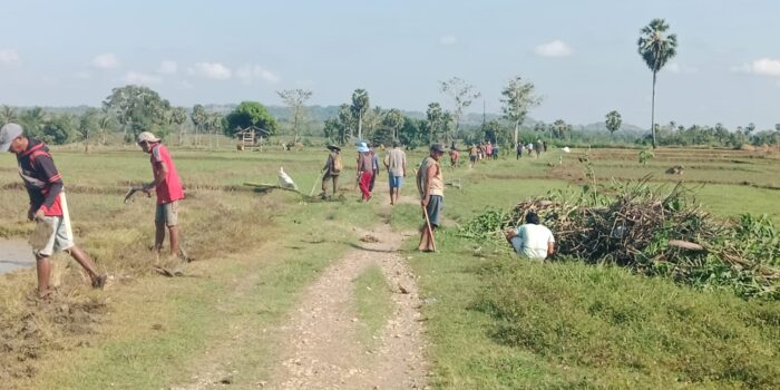 AWANGPONE, TRIBUNBONEONLINE.COM– Pemerintah Desa Jaling, Kecamatan Awangpone, Kabupaten Bone, melaksanakan kegiatan gotong royong perbaikan jalan tani di Dusun 3 Lempu dalam rangka