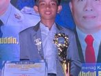 Foto: Kepala UPT SMP Negeri 5 Sibulue, Syahruddin memantau hasil karya pelajarnya