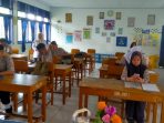 Foto: Kepala UPT SMP Negeri 5 Sibulue, Syahruddin memantau hasil karya pelajarnya