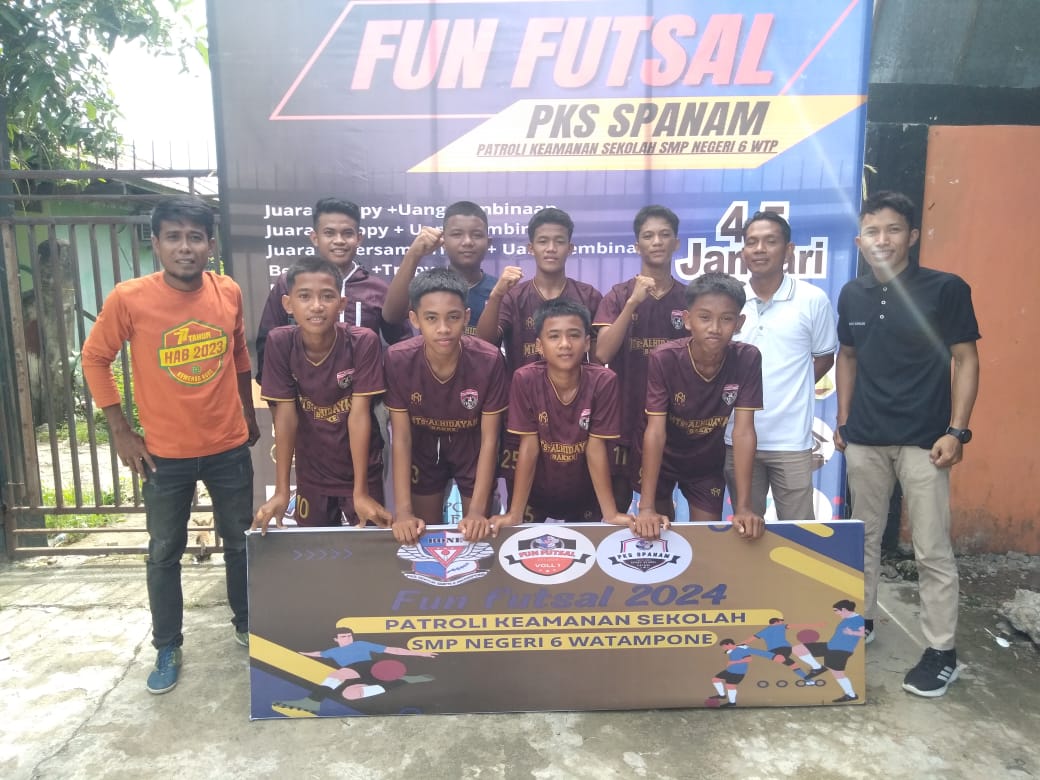 BAREBBO,TRIBUNBONEONLINE.COM–Tim Futsal MTs Al Hidayah Bakke mampu memanjangkan nafasnya pada turnamen FUN Futsal PKS SPANAM Competition yang dilaksanakan di lapangan futsal Erzy, yang diikuti sebanyak 32 team. Jum’at, (05/Januari/2024). Hal tersebut terjadi setelah Tim Futsal MTs Al Hidayah Bakke yang di nahkodai oleh Supirman, Guru MTs Al Hidayah Bakke ini mampu melaju ke babak 8 besar dengan 10 poin.