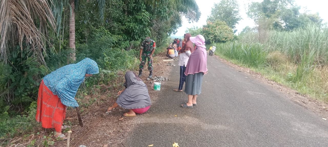 PONRE, TRIBUNBONEONLINE.COM– Kerja bakti, Babinsa Koramil 1407-10/Ponre Sertu Kasman melaksanakan kegiatan kerja bakti bersama Ibu – ibu PKK membersihkan rumput dan sampah kanan kiri jalan raya berlokasi di Dusun Lawari Desa Bolli, Kec. Ponre, Kab. Bone Senin(11/03/2024).