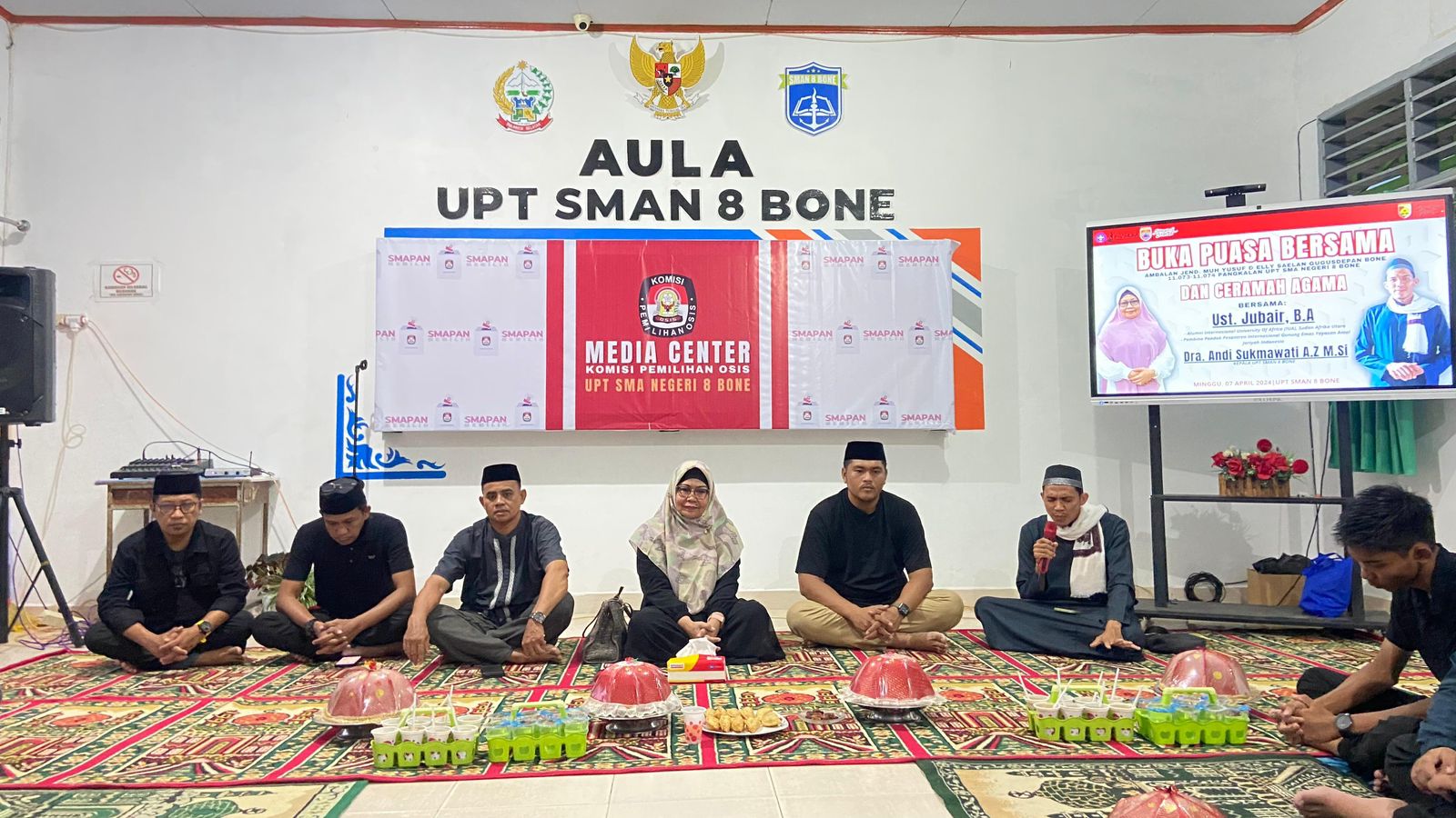 Setelah melaksanakan kegiatan berbagi ifthar di beberapa masjid, selanjutnya dilanjutkan dengan buka puasa bersama yang dilaksanakan di Aula UPT SMA Negeri 8 Bone. Kegiatan buka puasa bersama ini, dihadiri oleh Ketua Mabigus Gerakan Pramuka Pangkalan SMA Negeri 8 Bone, Dra. Andi Sukmawati Andi Zubaer, M.Si., Wakasek Bidang Kesiswaan, Pembina Pramuka Putra dan Putri, Purna beserta seluruh anggota Gerakan Pramuka Ambalan Jend. Muh. Yusuf dan Elly Saelan.