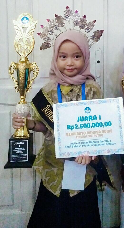 AMALI, TRIBUNBONEONLINE.COM– Menjadi satu kebanggaan bagi masyarakat Kabupaten Bone khususnya warga Kec. Amali karena seorang anak kecil berusia 9 tahun yang masih duduk di kelas 2 sekolah dasar telah mampu mengukir prestasi sekaligus mengharumkan nama Kabupaten Bone ke tingkat Nasional di ajang lomba (Festival Tunas Bahasa Ibu (FTBI) yang akan dilaksanakan pada awal Mei 2024 mendatang.