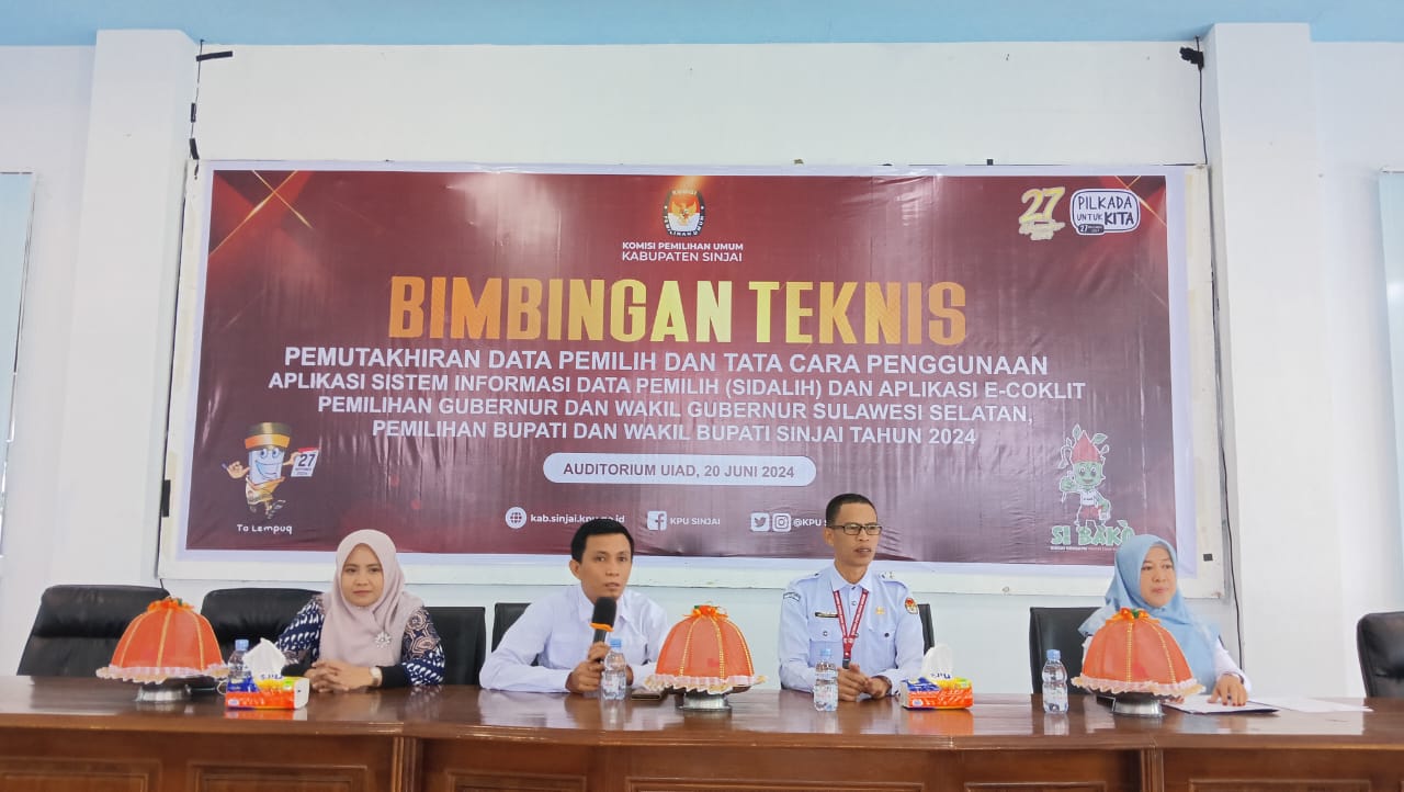 Kegiatan berlangsung di Auditorium Kampus UIAD Kabupaten Sinjai, Jalan Sultan Hasanuddin, Kecamatan Sinjai Utara, Kamis (20/6/2024), yang dibuka langsung Plh. ketua KPU Sinjai Awaluddin dan dihadiri komisioner KPU Sinjai dan Ketua PPK dan Devisi Data PPK serta seluruh Divisi Data PPS se-Kabupaten Sinjai.