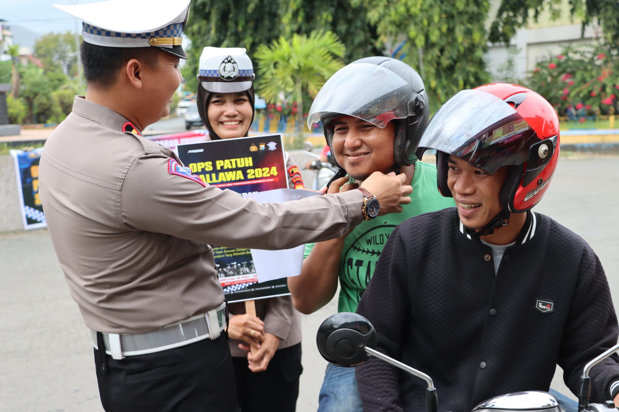 WATAMPONE, TRIBUNBONEONLINE.COM–Dalam rangka Operasi Patuh Pallawa 2024, Satlantas Polres Bone terus melaksanakan sosialisasi, pembagian brosur, stiker serta kampanye keselamatan berkendara, termasuk cara penggunaan helm yang benar, Rabu (24/7/2024).