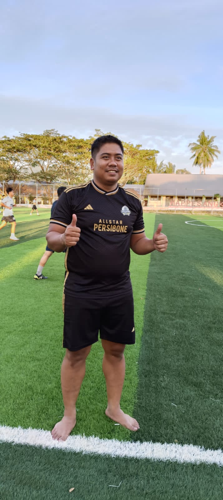 PONRE, TRIBUNBONEONLINE.COM–Mungkin kali pertama yang dirasakan oleh Camat Bengo, Edy Saputra Syam, S.STP, M.Si bermain di rumput sintetis pada lapangan sepak bola Bakunge Desa Mappesangka Kecamatan Ponre, Kabupaten Bone, Kamis, 22 Agustus 2024.