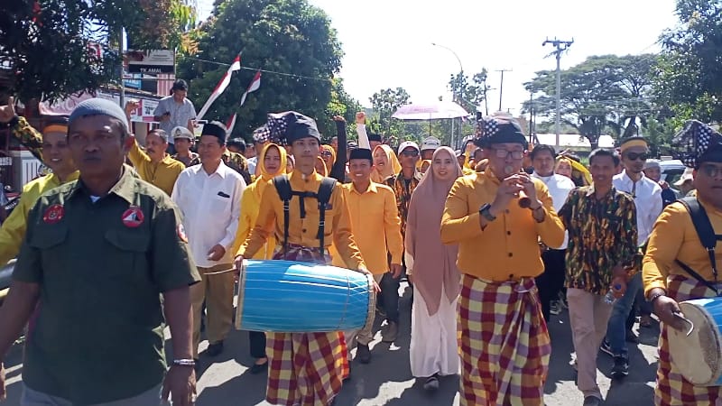 Pasangan BERAKARMI berjalan kaki dari kantor DPC Sinjai ke Kantor KPU Sinjai diantar ratusan simpatisan dan diiringi tabuhan gendang