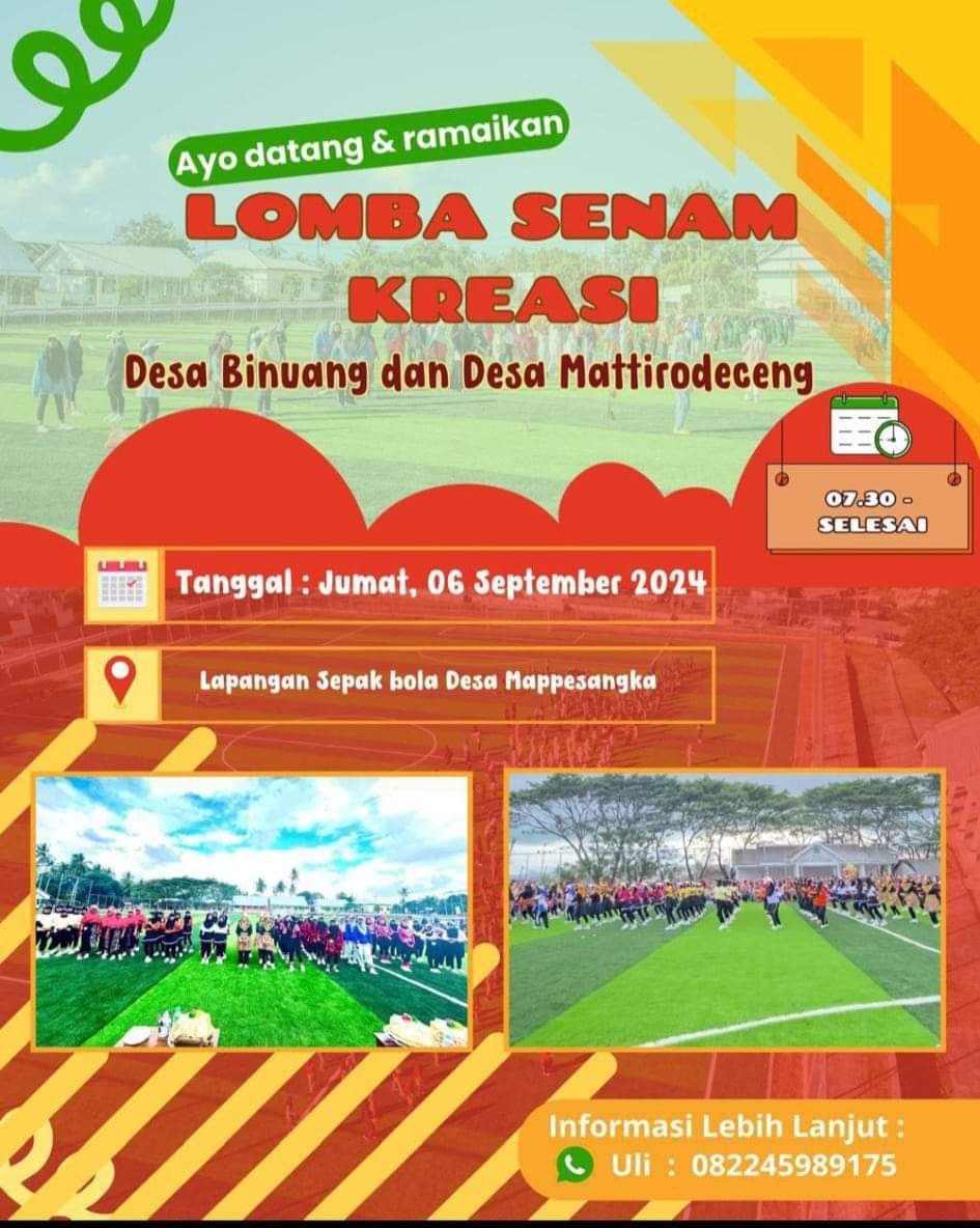 Uli Sanjaya, adalah selaku kordinator lomba senam kreasi dua desa tersebut, dikonfirmasi mintcream-quail-753864.hostingersite.com, Kamis, 5 September 2024, mengatakan, Menjelang pesta panen yang akan diadakan di Mattirodeceng dan Binuang, lomba senam kreasi salah satu rangkaian acaranya,” katanya.