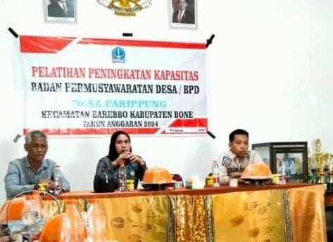 BAREBBO, TRIBUNBONEONLINE.COM–Pemerintah Desa Parippung melaksanakan kegiatan pelatihan peningkatan kapasitas bagi anggota Badan Permusyawaratan Desa (BPD) untuk mendukung pengelolaan pemerintahan desa yang lebih profesional dan transparan. Pelatihan ini berlangsung di aula desa setempat dan dihadiri oleh seluruh anggota BPD, perangkat desa, serta beberapa narasumber yang kompeten di bidang tata kelola, di aula kantor desa Parippung, Sabtu (16/11/24).