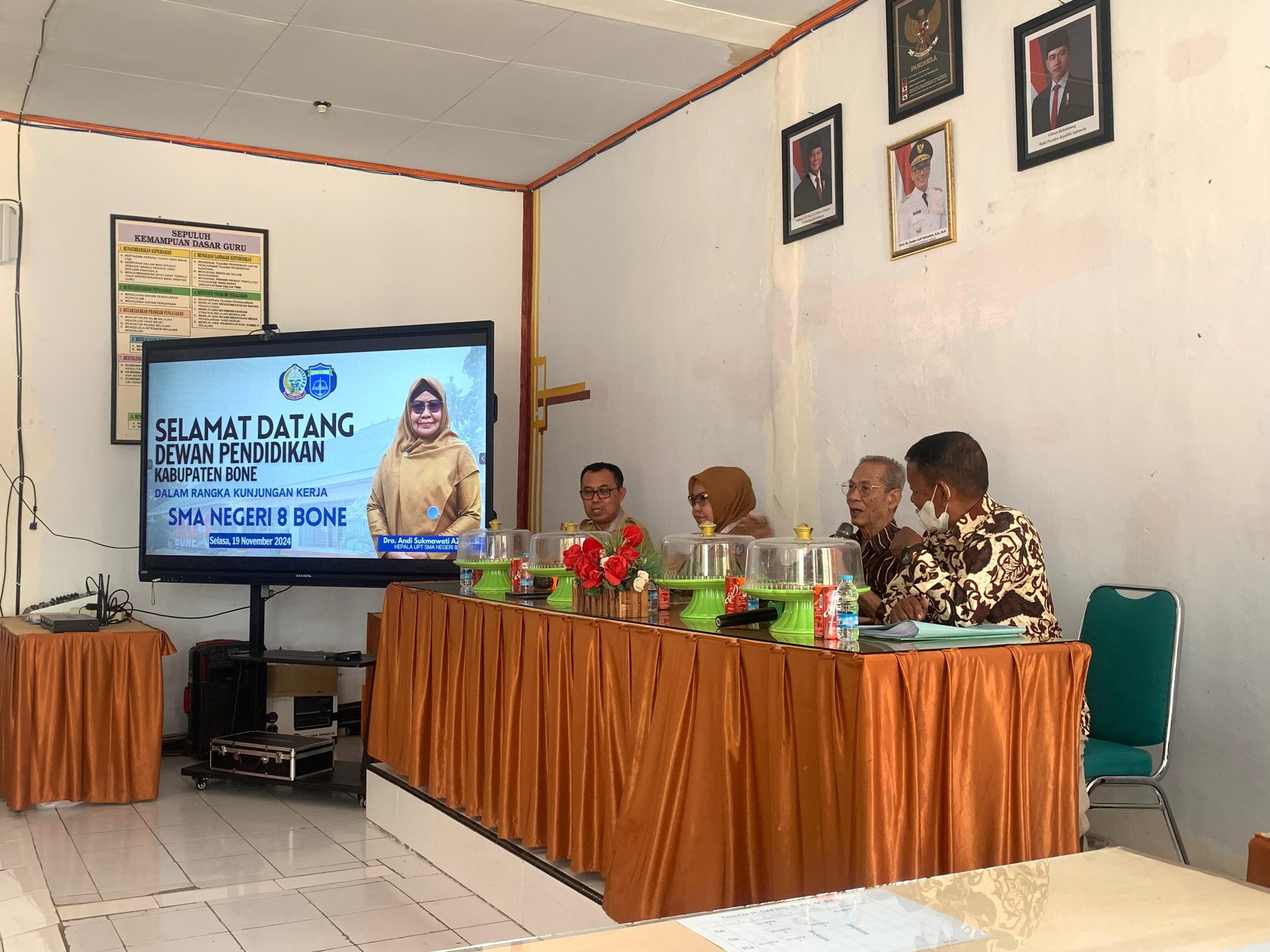 “Dari sekian sekolah yang saya datangi, Alhamdulillah saya sangat suka dan kagum dengan sekolah ini, setelah saya keliling, saya menyatakan bahwa SMA Negeri 8 Bone ini layak menerapkan 5 hari kerja,” ujarnya.