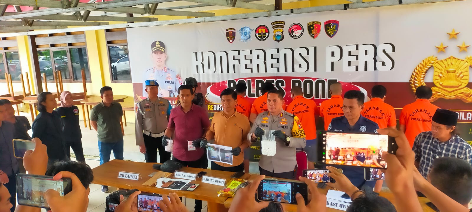 Kapolres Bone AKBP Erwin Syah mengatakan keenam orang tersangka tersebut ditangkap di tempat kejadian yang berbeda. Mereka ditangkap bersama dengan barang bukti sabu.