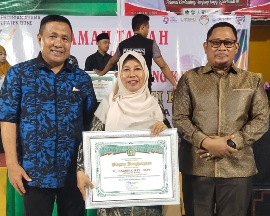 Penghargaan ini diberikan pada malam puncak HAB Kementerian Agama yang digelar dengan penuh kemegahan di Kabupaten Bone. Dihadiri oleh para pejabat Kemenag, termasuk Kepala Kemenag Bone dan Kepala Sub Bagian Tata Usaha, penghargaan ini menjadi pengakuan atas dedikasi, kerja keras, dan kepemimpinan Hj. Harnidah dalam memajukan MIN 8 Bone menjadi salah satu madrasah unggulan.