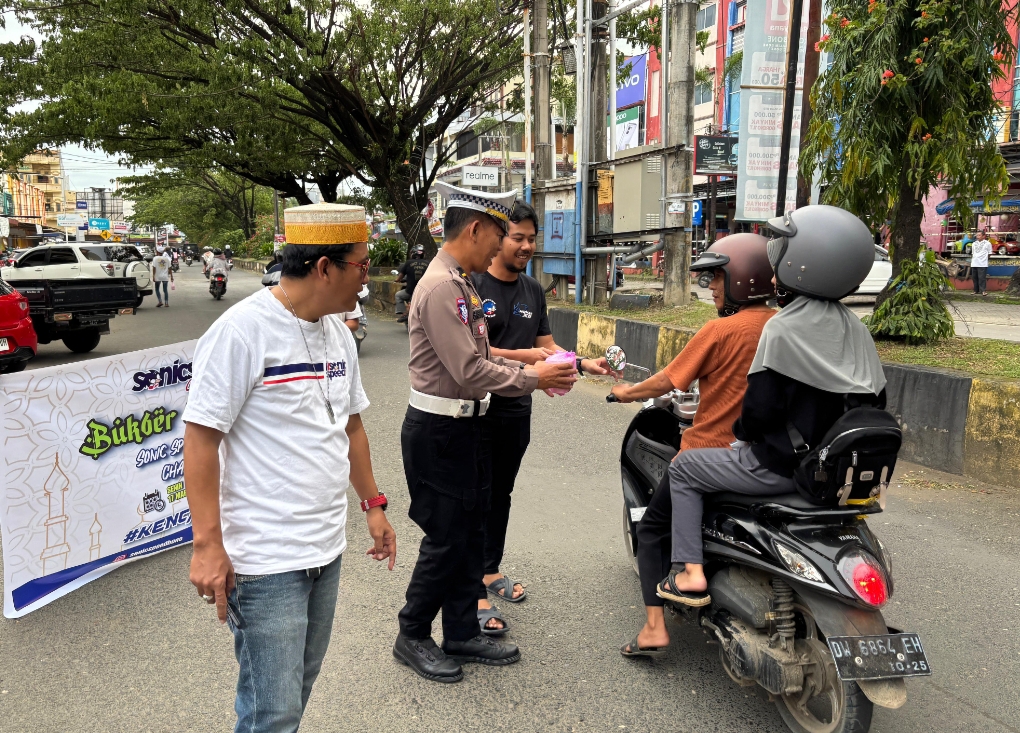 Disamping membagikan takjil, petugas bersama anggota komunitas juga memberikan imbauan kepada para pengendara untuk selalu mematuhi peraturan lalu lintas dan mengutamakan keselamatan.