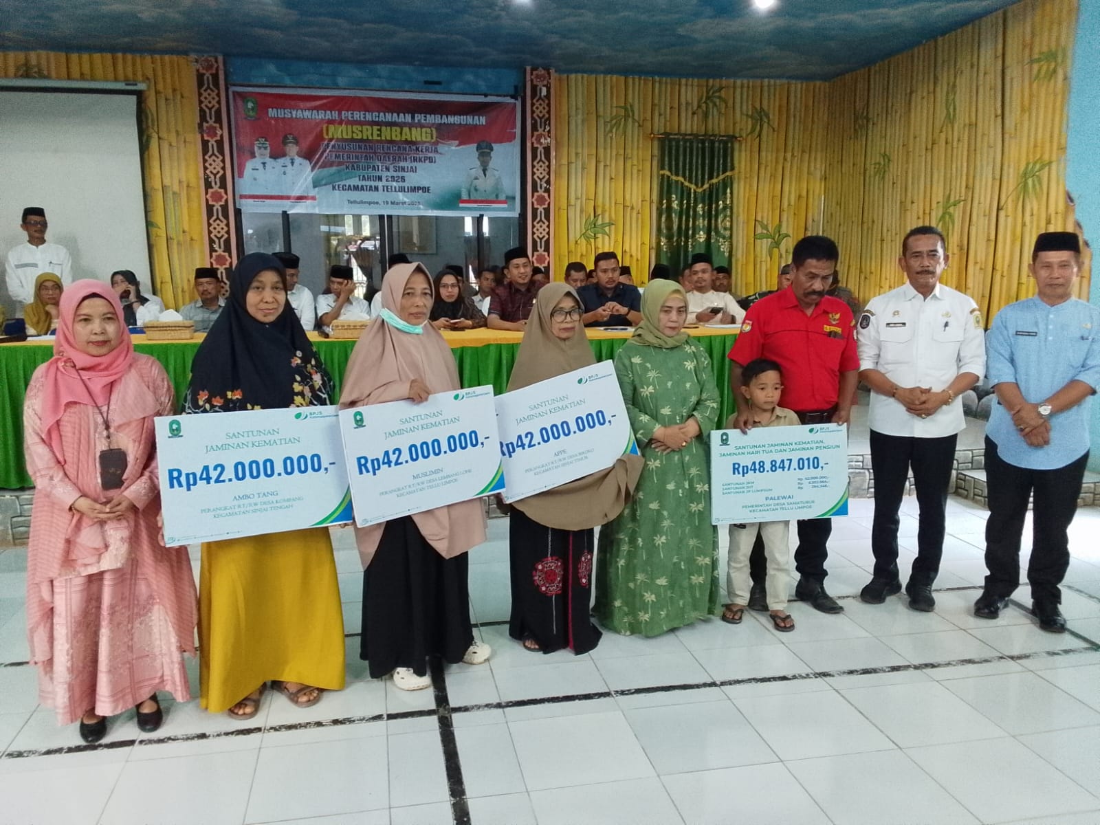 Di sela pelaksanaan Musrenbang RKPD di Kecamatan Tellulimpoe ini, Bupati Sinjai menyerahkan santunan kematian kepada 4 orang ahli waris.
