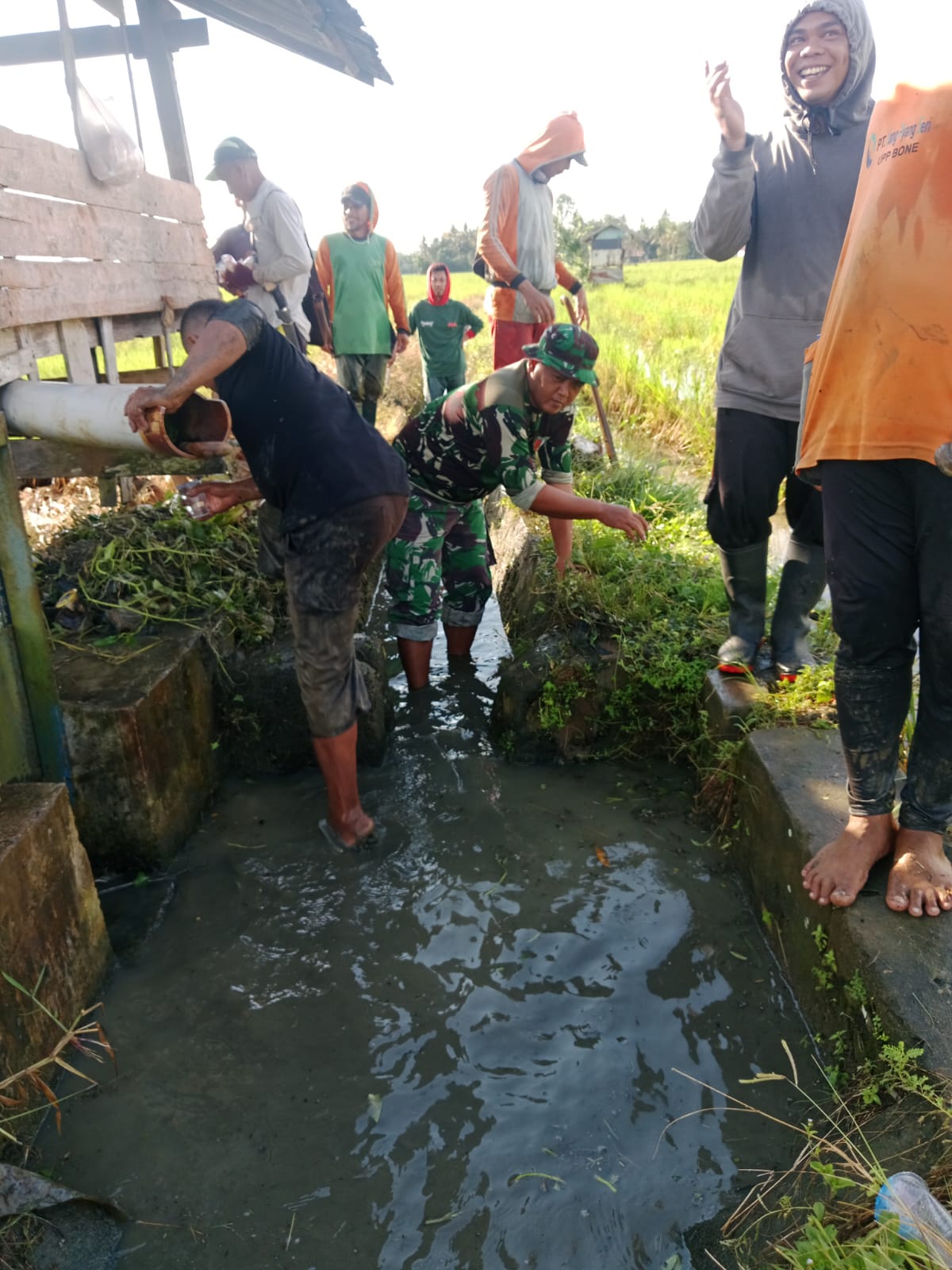 Babinsa Apala Serma Ismail Bersama Warga Laksanakan Karya Bhakti Pembersihan Saluran Irigasi
