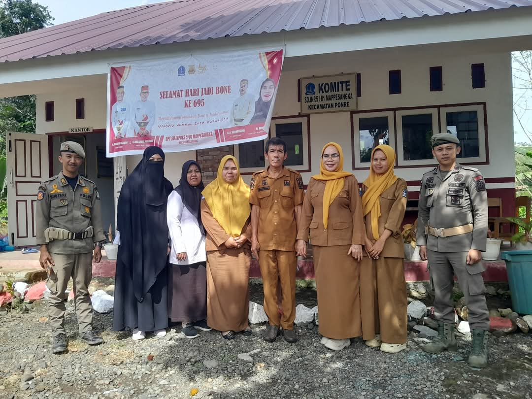 PONRE, TRIBUNBONEONLINE.COM–Satuan Polisi Pamong Praja (Satpol PP) Pemenrintah Kabupaten Bone, sambangi UPT Sekolah Dasar Inpres (SDI) 5/81 Mappesangka Kecamatan Ponre, Selasa, 15 Juli 2025.