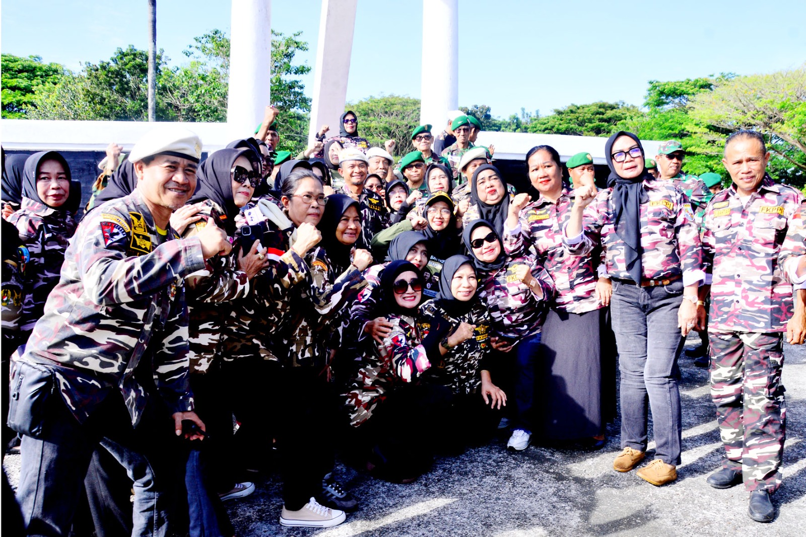 Penuh semangat, Bupati Bone H. Andi Asman Sulaiman juga selaku Plt Ketua PC FKPPI 1916 Bone swafoto bersama pengurus dan anggota FKPPI usai ziarah rombongan di Taman Makam Pahlawan Watampone.
