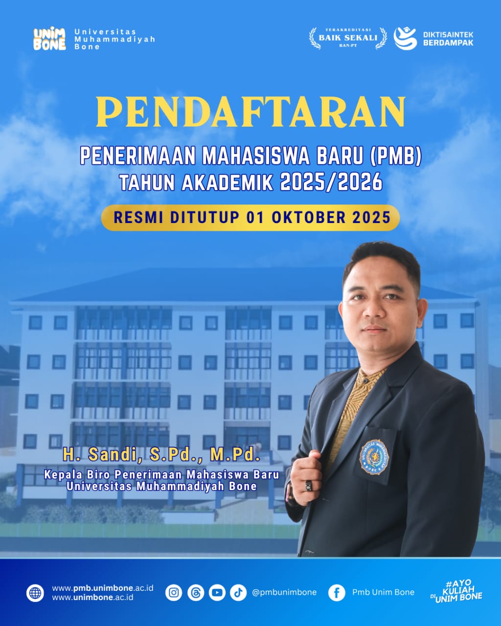 “Alhamdulillah, PMB UNIM Bone Tahun Akademik 2025/2026 resmi ditutup dengan total 927 mahasiswa baru. Insya Allah, kami akan terus melakukan penataan dan evaluasi agar pelayanan penerimaan lebih baik lagi di tahun mendatang. Harapan kami, semakin banyak generasi muda dapat mengakses pendidikan tinggi di UNIM Bone,” ujarnya, Kamis (2 Oktober 2025).