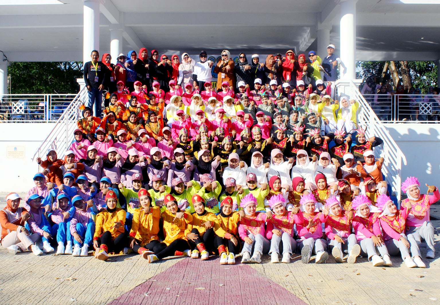 Kabid PAUD Disdik Bone Hj. Andi Rasna, S.Pd, M.Pd berpose bersama para peserta lomba Senam Anak Indonesia Sehat, penuh semangat.