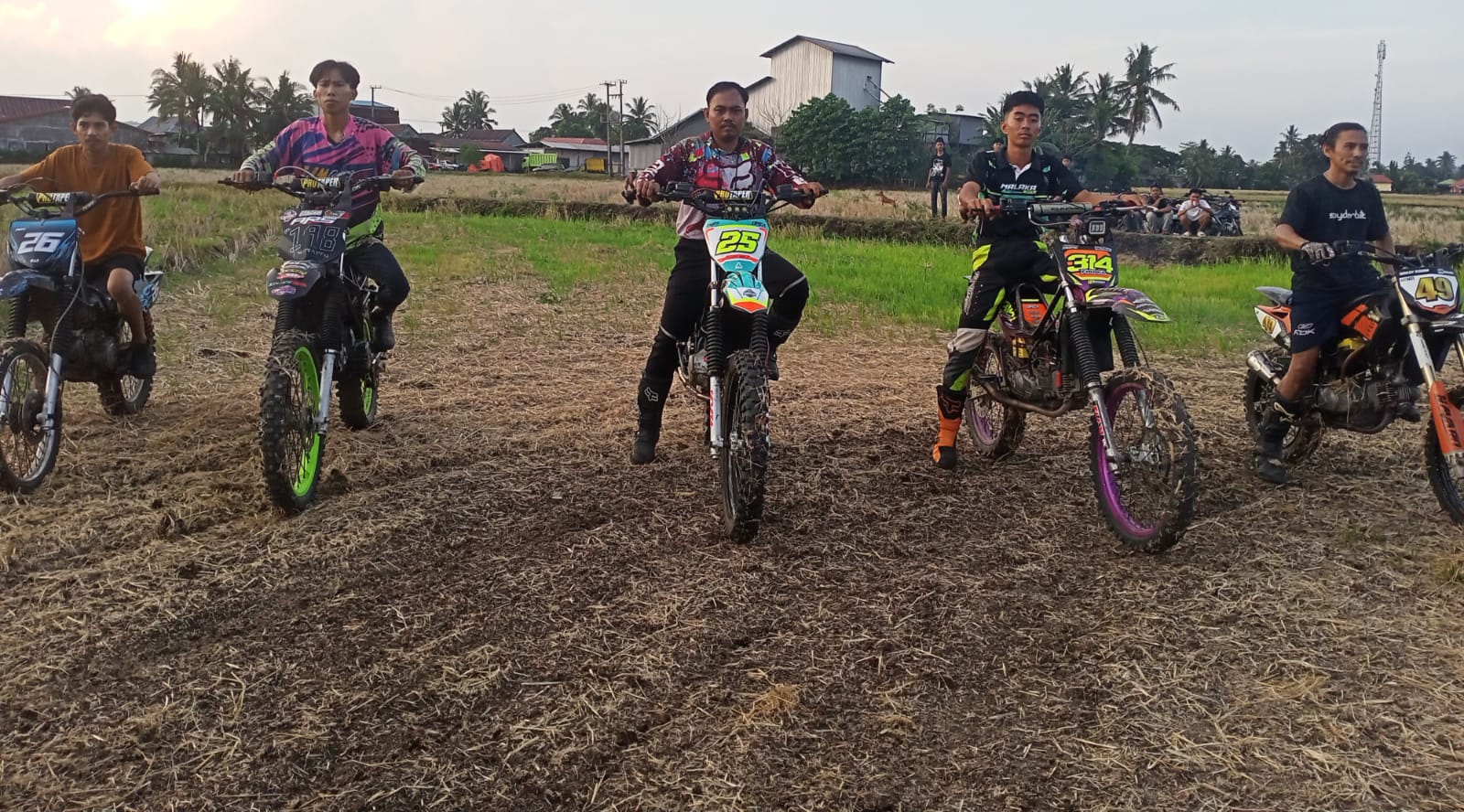 BENGO, TRIBUNBONEONLINE.COM– Deru mesin motor memecah senja di Desa Bengo, Kecamatan Bengo, Kabupaten Bone. Di lintasan tanah sawah yang berdebu, para rider muda tampak beradu kecepatan, menaklukkan tikungan, dan mengasah refleks. Latihan intensif ini menjadi bagian dari persiapan jelang balap motor pesta panen di Kecamatan Kahu yang akan segera digelar dan menariknya latihan ini selain mendapat dukungan juga memberikan tontonan bagi pemuda dan masyarakat di Desa Bengo.