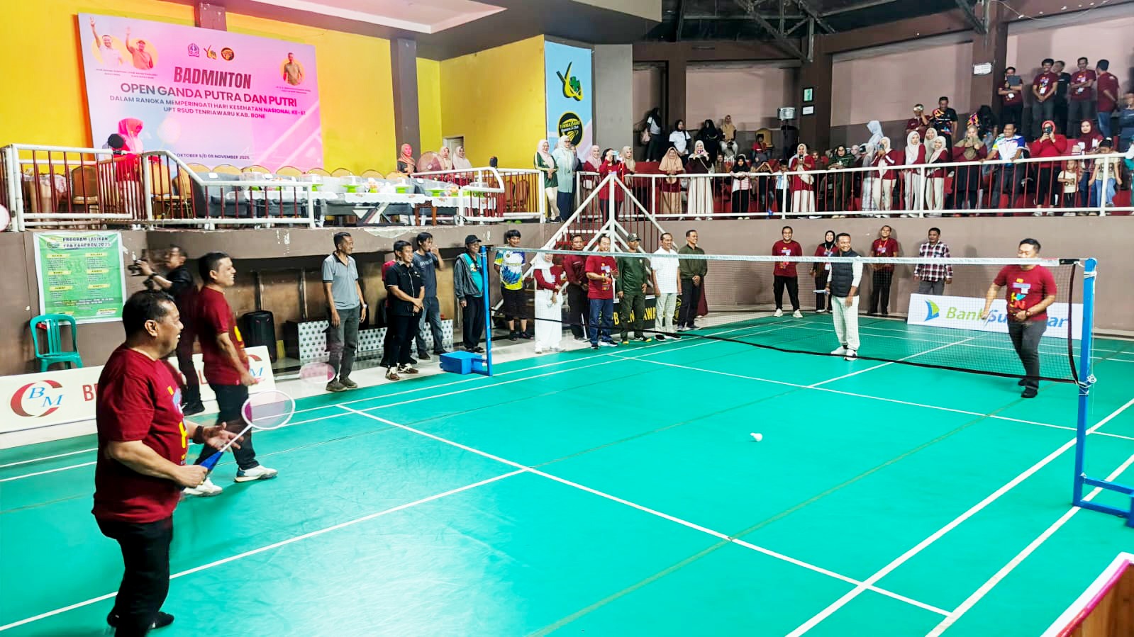 BONE, TRIBUNBONEONLINE.COM– Semangat dan keceriaan menyelimuti Gedung Pemuda Bone, Jalan Kawerang, Jumat (31/10/2025). Ratusan tenaga kesehatan dari berbagai instansi dan fasilitas pelayanan kesehatan di Kabupaten Bone berkumpul dalam ajang Turnamen Badminton Open Ganda Putra dan Putri yang digelar oleh UPT RSUD Tenriawaru Kabupaten Bone.