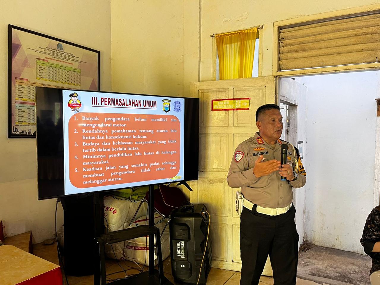 Kasat Lantas Polres Bone AKP Musmulyadi memimpin langsung penyampaian materi meliputi edukasi disiplin berlalu lintas, hingga pemahaman pencegahan kecelakaan.