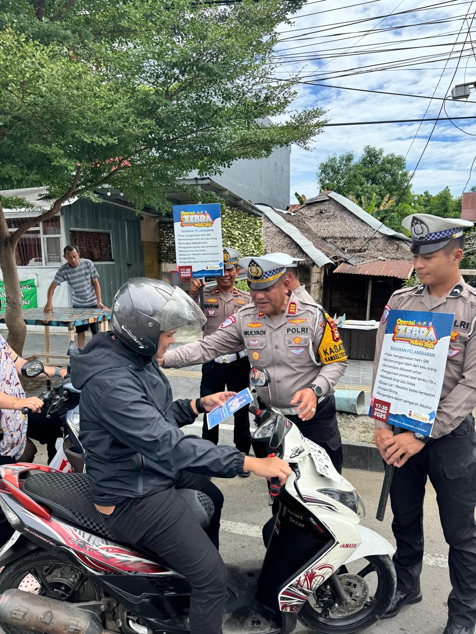 Selain memberikan penyuluhan secara tatap muka, petugas juga membagikan brosur berisi informasi prioritas pelanggaran dalam Operasi Zebra Pallawa 2025 agar pesan yang disampaikan dapat lebih mudah dipahami dan diingat oleh masyarakat.
