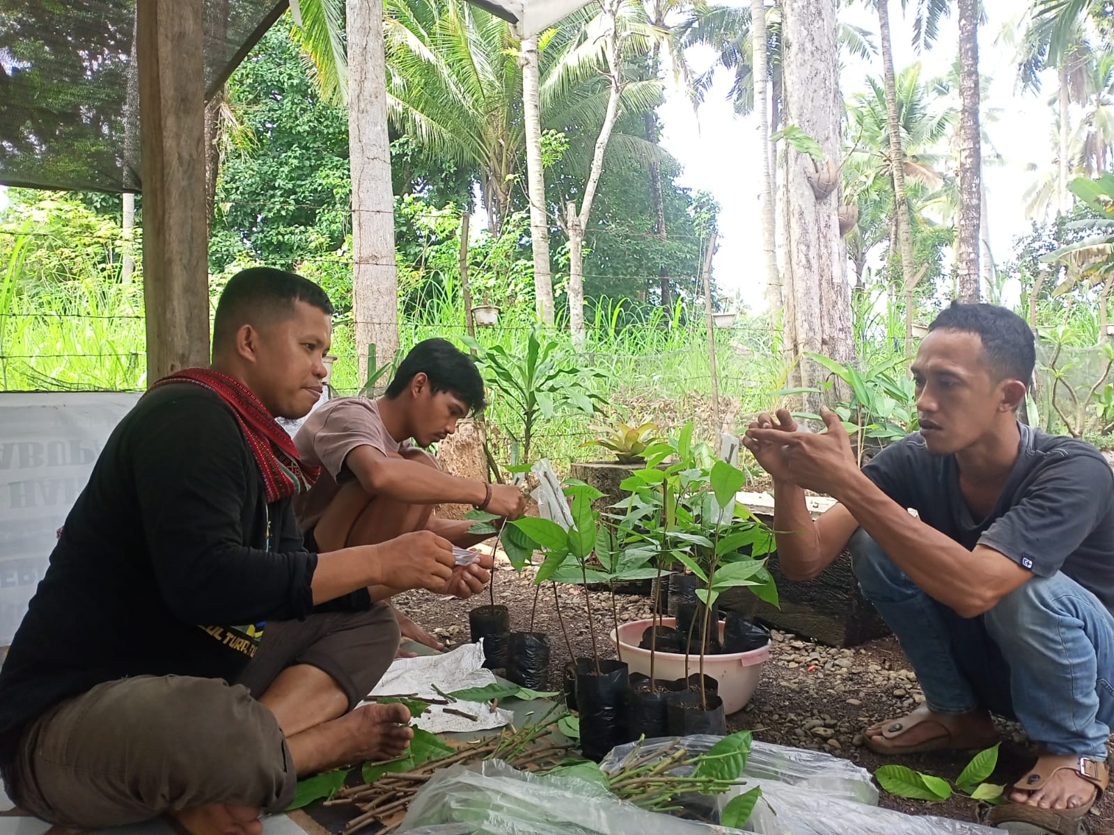 Pada agenda kali ini, praktik lapangan dipusatkan di Pembibitan dan Kebun Agroforestry Anak Desa Farm milik Asmarjun di Desa Cina. Lokasi ini menjadi laboratorium lapangan bagi kader muda yang ingin memahami teknik budidaya kakao adaptif, terutama melalui pelatihan penyambungan entres ke batang utama serta pengelolaan agroforestry sebagai sistem yang lebih tahan terhadap tekanan cuaca. Pendekatan ini menjadi bagian penting dari upaya regenerasi petani yang tidak hanya menguasai teori, tetapi juga keterampilan teknis yang dapat diterapkan langsung di kebun masing-masing.
