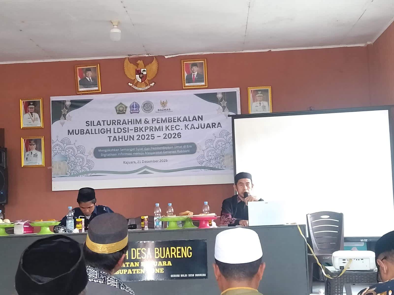 KAJUARA, TRIBUNBONEONLINE.COM– Wakil Ketua II Bidang Pendistribusian Badan Amil Zakat Nasional (BAZNAS) Kabupaten Bone Muhaemin Ali, Lc memberikan materi tentang mengenal zakat, syarat dan ketentuannya kepada para mubaligh DPK BKPRMI Kecamatan Kajuara, Ahad (21/12/2025) di Balai Kantor Desa Buareng Kecamatan Kajuara.