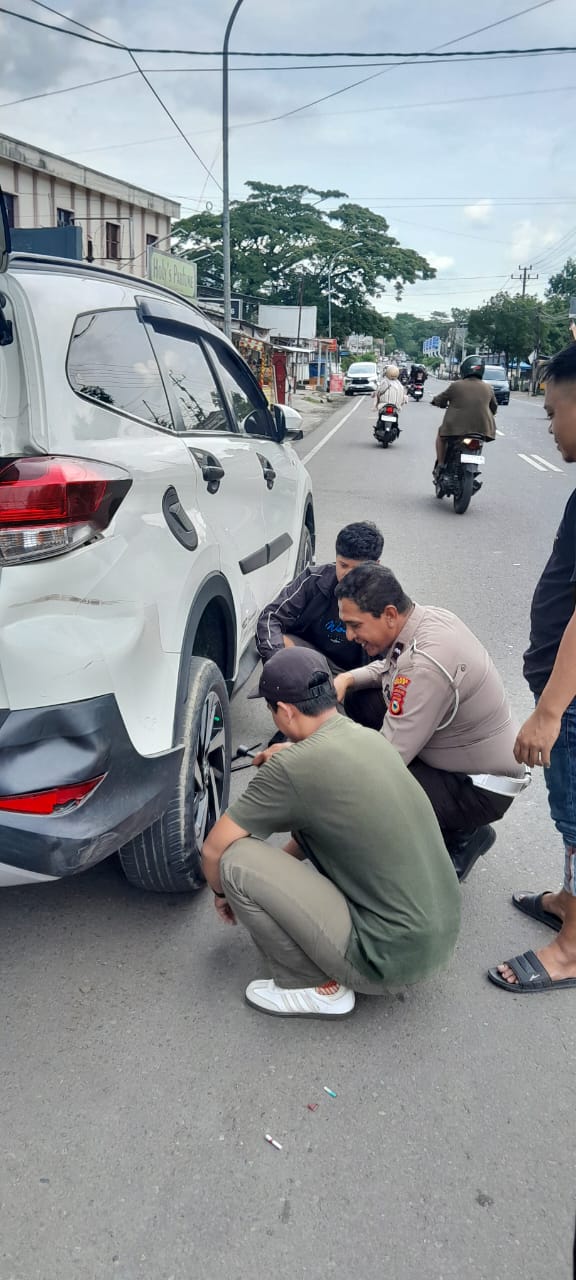 Polisi Humanis, Satlantas Polres Bone Bantu Warga yang Alami Ban Bocor