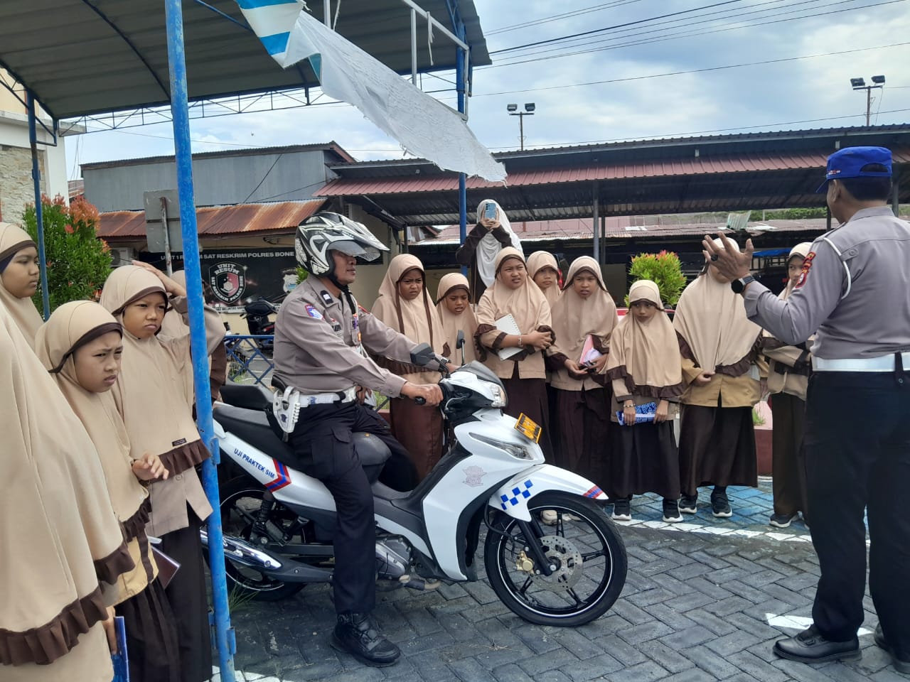Dalam kunjungan tersebut, anak-anak dikenalkan sejak dini dengan tugas-tugas Kepolisian, khususnya peran polisi lalu lintas dalam menjaga keamanan, keselamatan, ketertiban, dan kelancaran berlalu lintas.