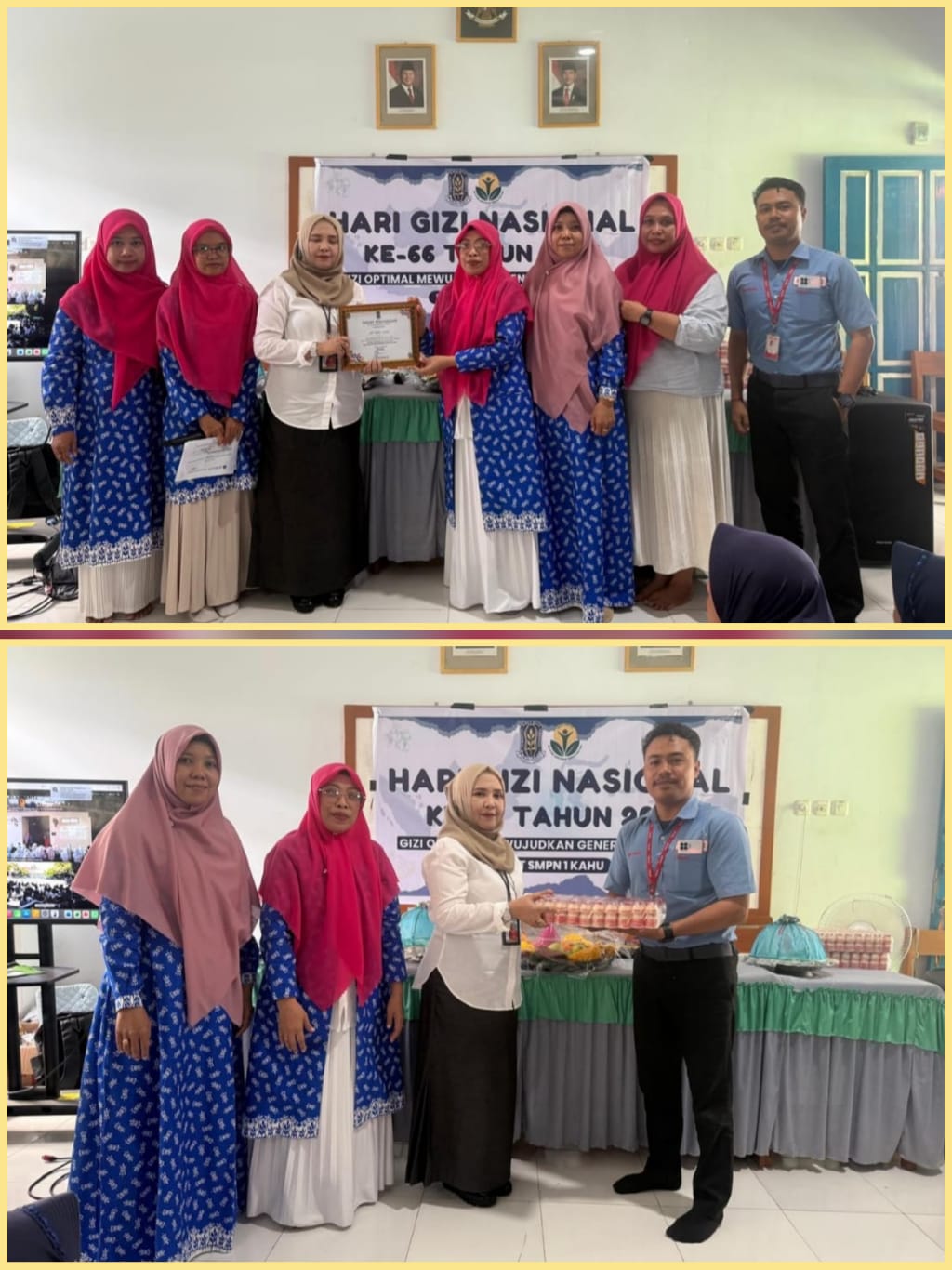 Kepala SMP Negeri 1 Kahu, Andi Hasriani Asfar, SS., S.Pd., MM, dalam sambutannya menyampaikan apresiasi atas kepercayaan yang diberikan kepada SMPN 1 Kahu sebagai lokus peringatan Hari Gizi Nasional ke-66. Ia menegaskan pentingnya edukasi gizi serta pembiasaan Perilaku Hidup Bersih dan Sehat (PHBS) di lingkungan sekolah.