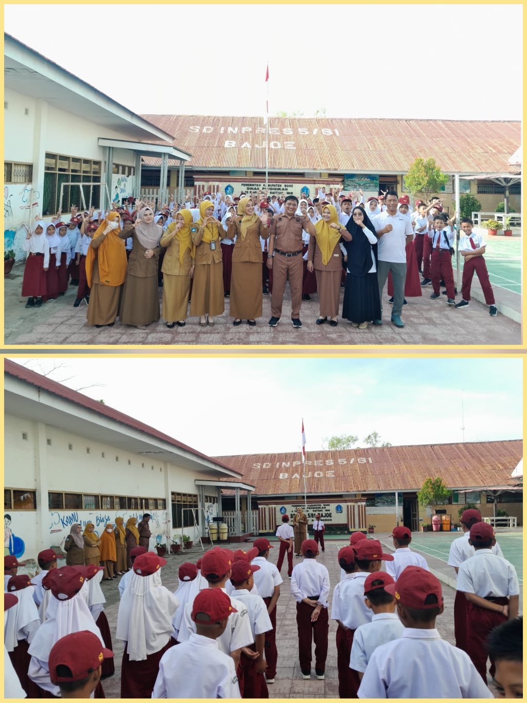 Upacara bendera yang berlangsung di halaman sekolah tersebut diikuti oleh Kepala UPT SD Inpres 5/81 Bajoe Ruslianto Asmara, S.Pd, seluruh tenaga pendidik dan kependidikan, serta murid UPT SD Inpres 5/81 Bajoe.