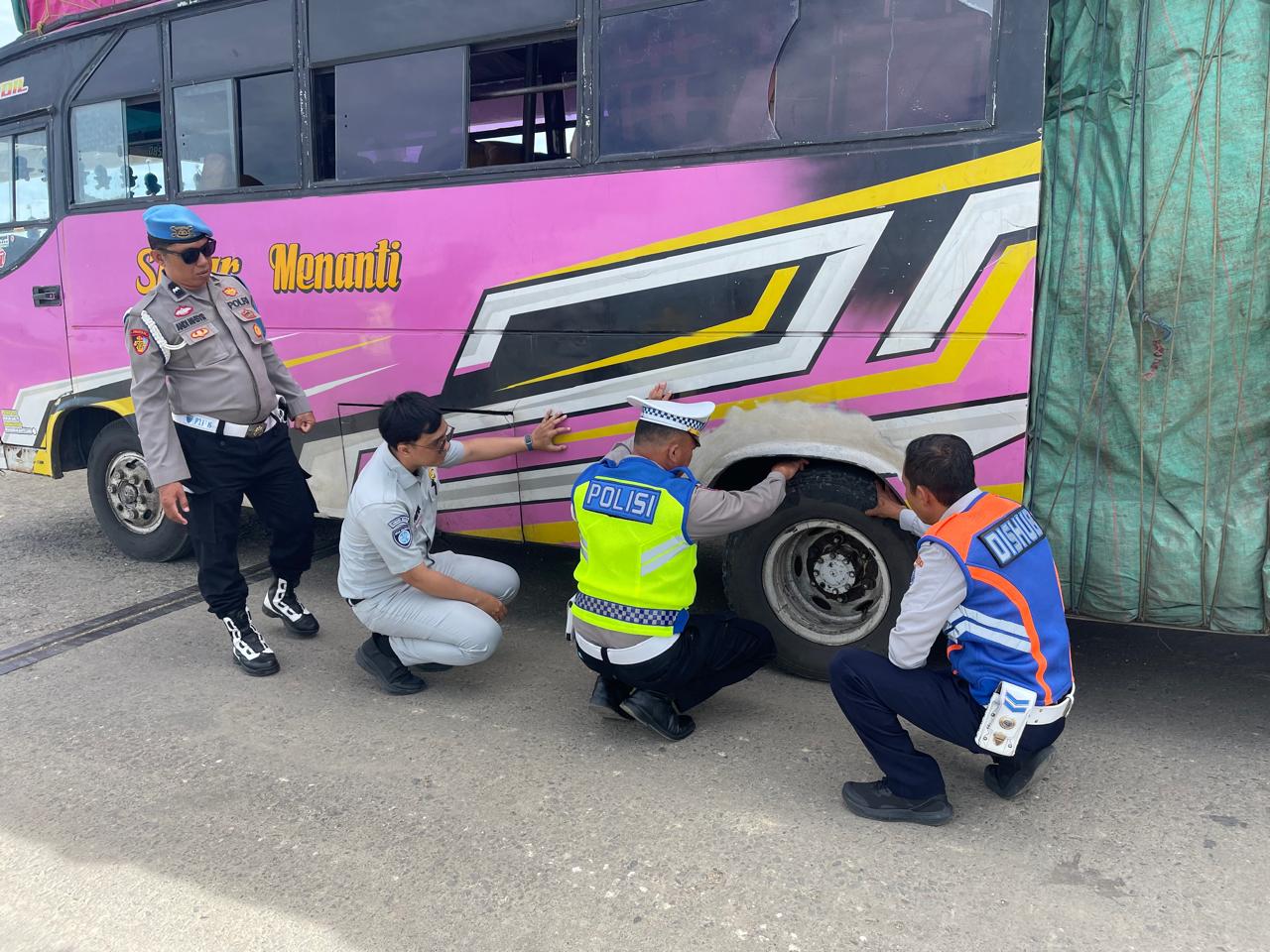 Satlantas Polres Bone bersama instansi terkait kembali melakukan ram check atau pemeriksaan kendaraan bus AKAP dan AKDP di Kawasan Pelabuhan Bajoe, Kecamatan Tanete Riattang Timur, Kabupaten Bone.
