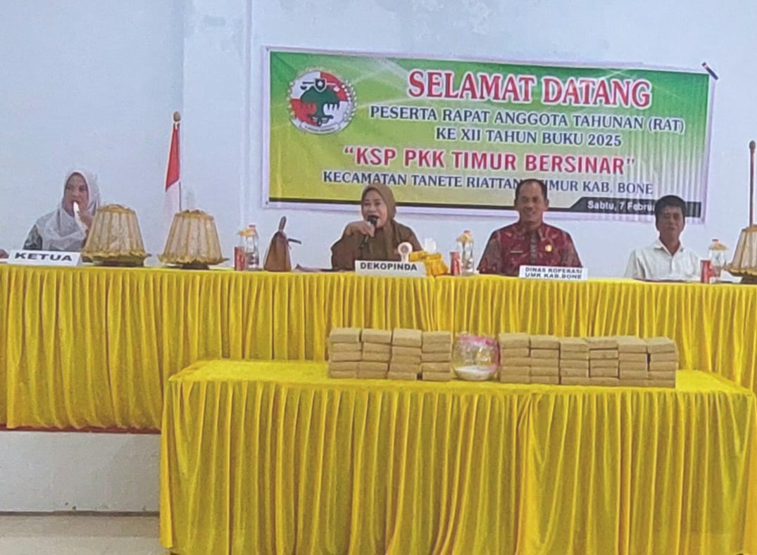 WATAMPONE, TRIBUNBONEONLINE.COM–Bertempat di Hotel Sarlim Jalan Wahidin Sudiro Husodo Watampone, pelaksanaan Rapat Anggota Tahunan (RAT) XII tahun buku 2025 KSP PKK Timur Bersinar berlangsung tertib, lancar dan penuh dengan nuansa kebersamaan, Sabtu 7 Februari 2026.