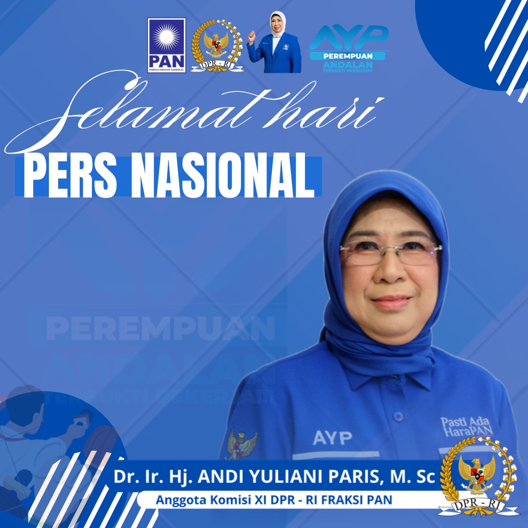 BONE, TRIBUNBONEONLINE.COM–Anggota Komisi XI DPR RI Fraksi PAN, Dr. Ir. Hj. Andi Yuliani Paris, M.Sc mengucapkan selamat Hari Pers Nasional (HPN) yang jatuh setiap 9 Februari kepada insan Pers di tanah air.