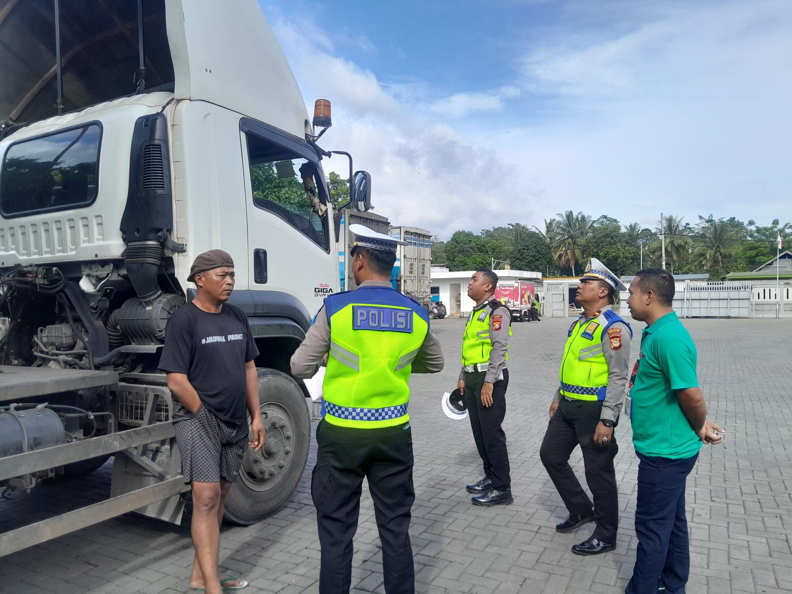 Satlantas Polres Bone Ramcek Kendaraan Angkutan Barang di PT BACB Bone