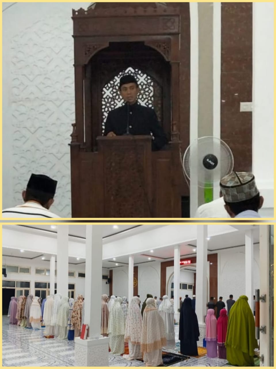 Pelaksanaan salat tarwih berjamaah dipimpin oleh Ustadz Aldy Faqih Lyani yang membimbing jamaah dengan khusyuk hingga penutupan witir.