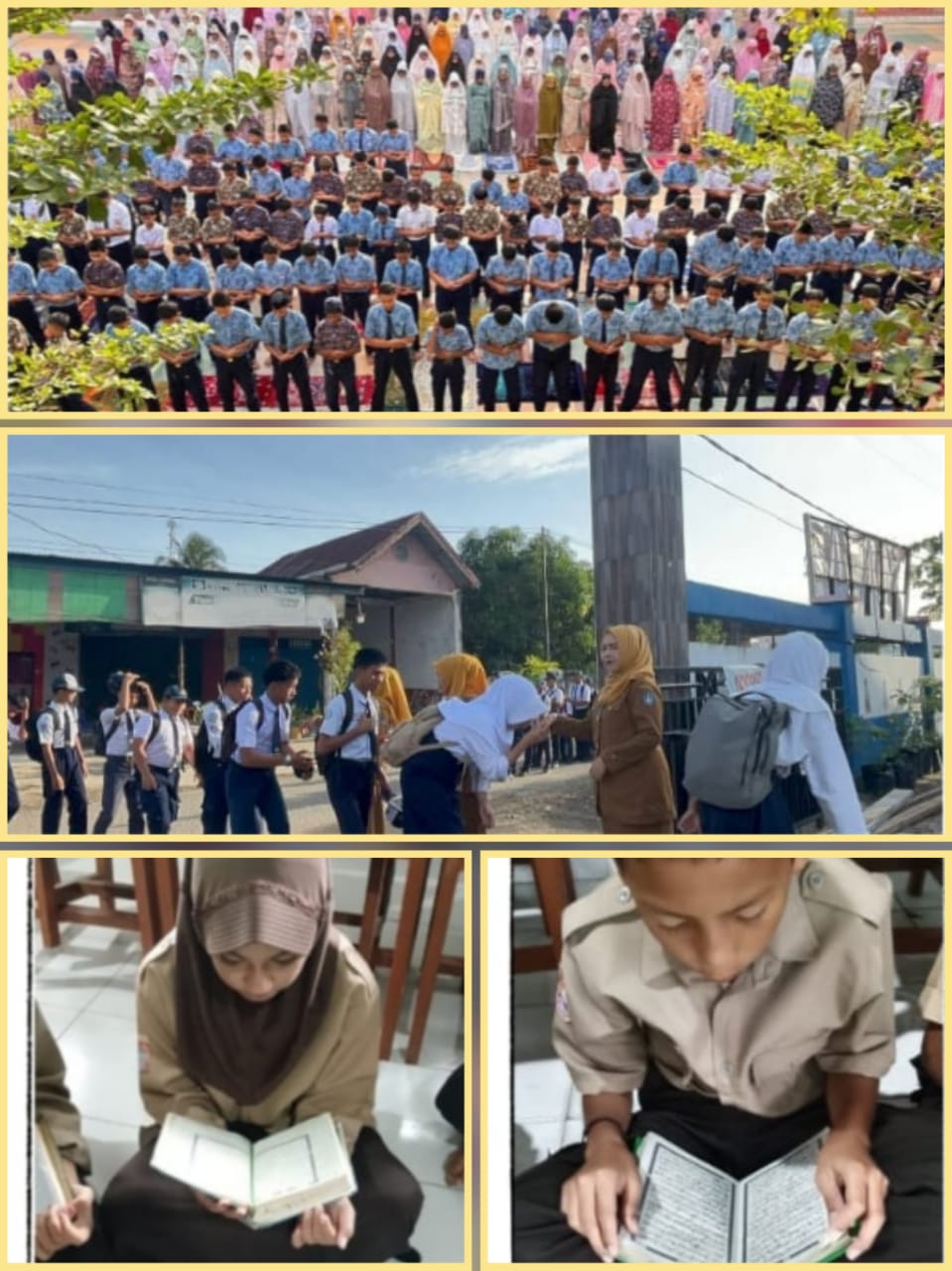 Setiap pagi, pelajar disambut melalui penerapan budaya 5S (Senyum, Salam, Sapa, Sopan, dan Santun) sebagai bagian dari pembiasaan karakter positif di lingkungan sekolah. Kegiatan dilanjutkan dengan pelaksanaan salat Dhuha berjamaah yang diikuti oleh seluruh warga sekolah. Setelah itu, para guru secara bergantian menyampaikan ceramah singkat berisi penguatan nilai moral, etika, serta motivasi belajar guna membangun kesadaran spiritual dan kedisiplinan pelajar.
