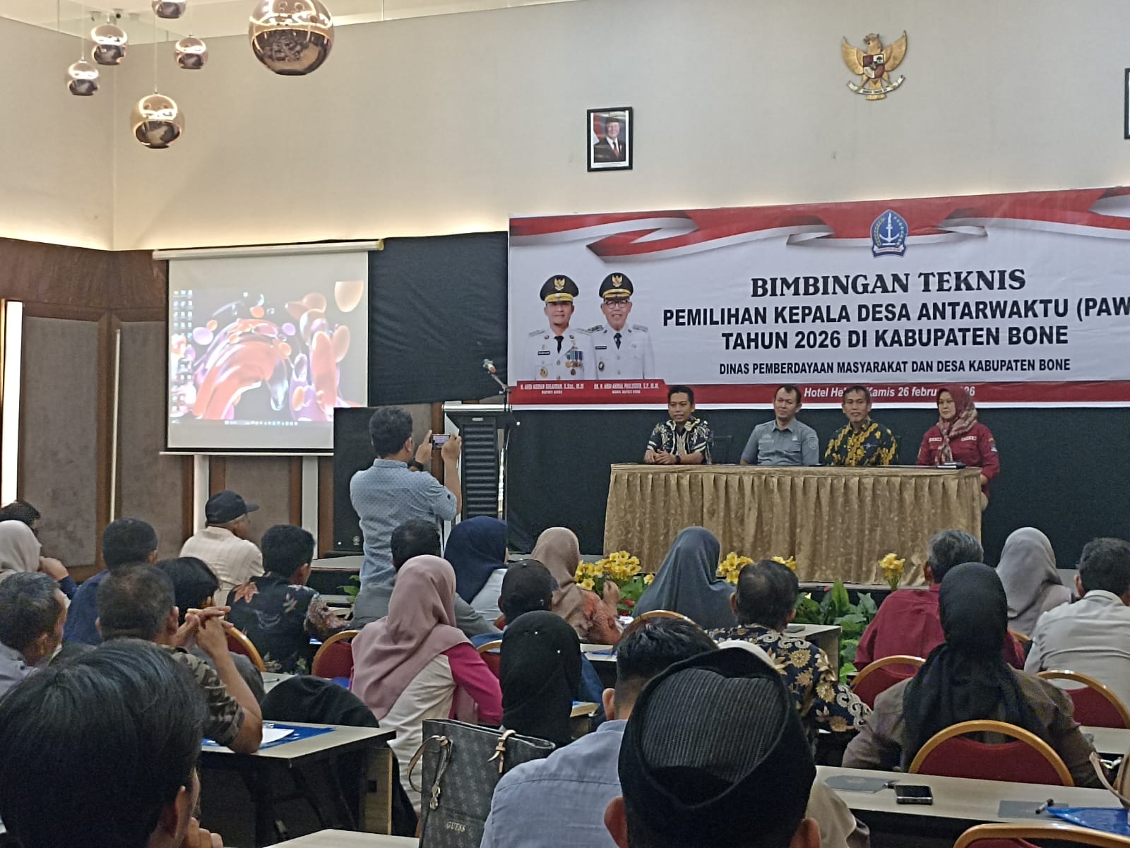 BONE, TRIBUNBONEONLINE.COM– Di tengah semangat memperkuat tata kelola pemerintahan desa yang demokratis dan berintegritas, Dinas Pemberdayaan Masyarakat dan Desa Kabupaten Bone menggelar Bimbingan Teknis (Bimtek) Pemilihan Kepala Desa Antar Waktu (PAW) tahun 2026. Kegiatan ini berlangsung di Hotel Helios pada Kamis, 26 Februari 2026.