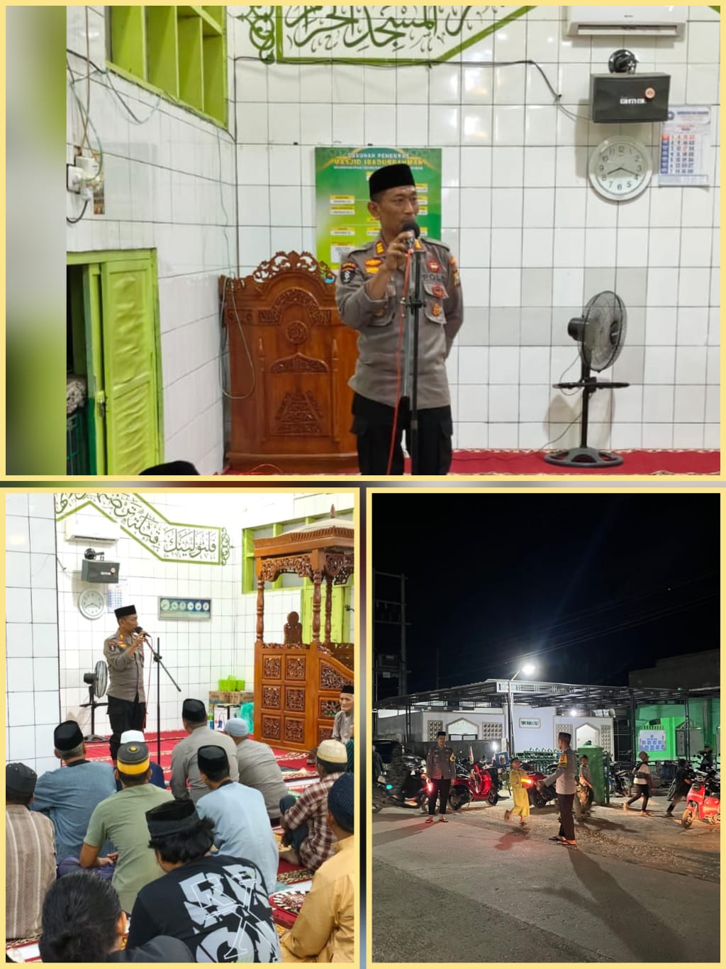 alam kesempatan itu, Kapolsek Barebbo AKP Muhlis menyampaikan sejumlah himbauan kamtibmas kepada jamaah yang hadir. Ia mengawali dengan ucapan terima kasih atas penerimaan dirinya sebagai Kapolsek Barebbo dan kesempatan untuk hadir di tengah-tengah masyarakat pada bulan yang penuh berkah.