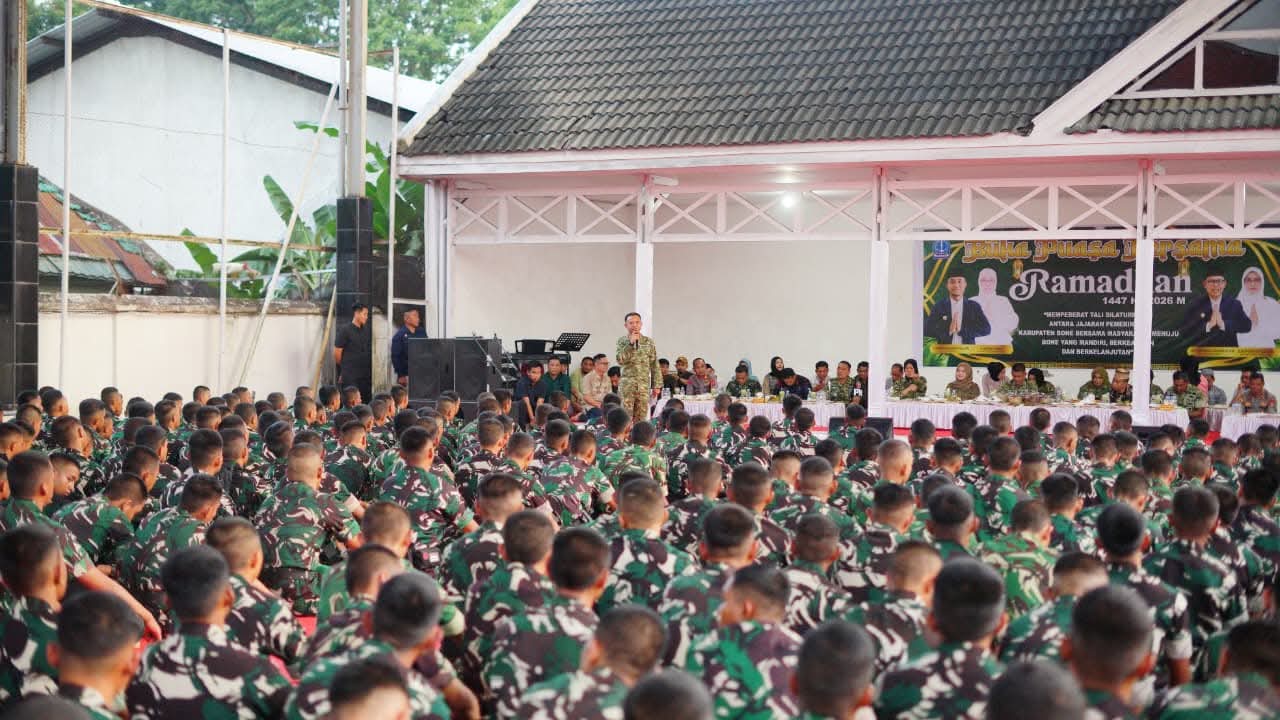 BONE, TRIBUNBONEONLINE.COM– Suasana hangat penuh kebersamaan mewarnai penyambutan prajurit Batalyon Infanteri TP 920/Lasalaga di Rumah Jabatan Bupati Bone, Jumat (13/3/2026). Bupati Bone H. Andi Asman Sulaiman, S.Sos., M.M bersama jajaran Forum Koordinasi Pimpinan Daerah (Forkopimda) Kabupaten Bone menyambut langsung kedatangan para prajurit yang akan bertugas di daerah tersebut.