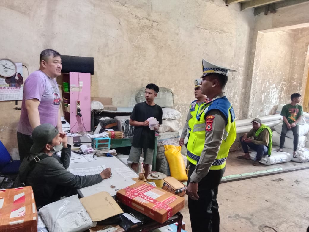 Dalam kegiatan tersebut, personel memberikan edukasi kepada para sopir terkait ketentuan jam operasional kendaraan angkutan barang dan mobil sumbu 3 selama arus mudik dan arus balik Idul Fitri 1447 H.