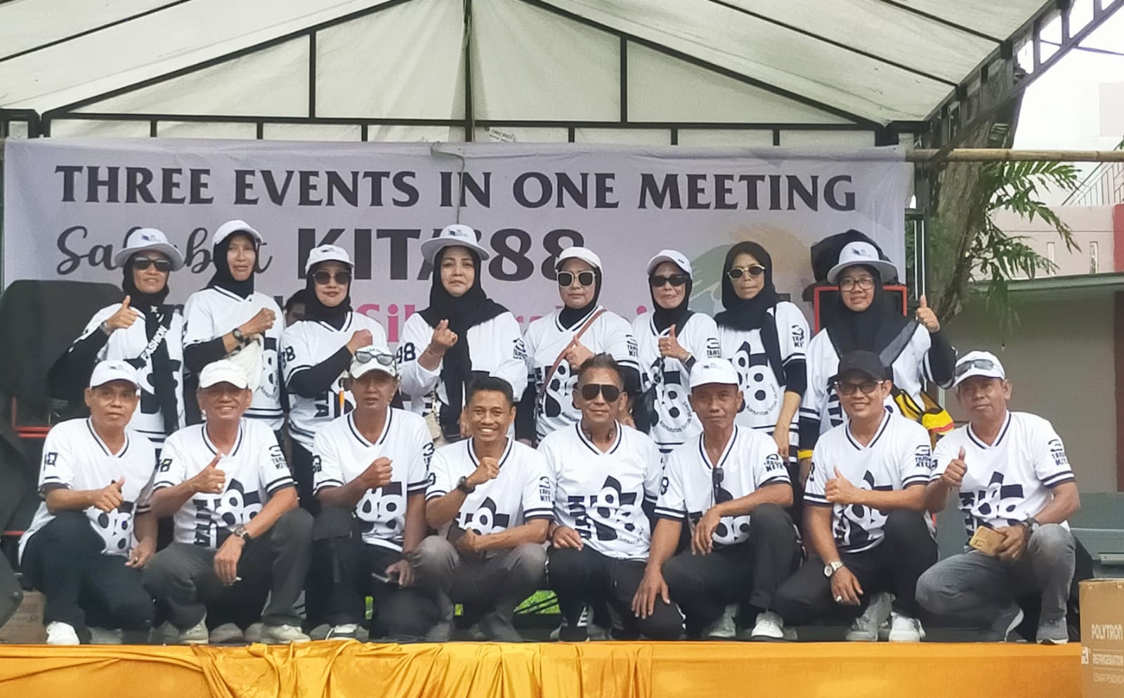 Swafoto bersama panitia setelah sukses menggelar reuni dan silaturahmi akbar Komunitas Lintas Alumni KITA '88 di kompleks stadion Watampne, Ahad (22/3/2026).