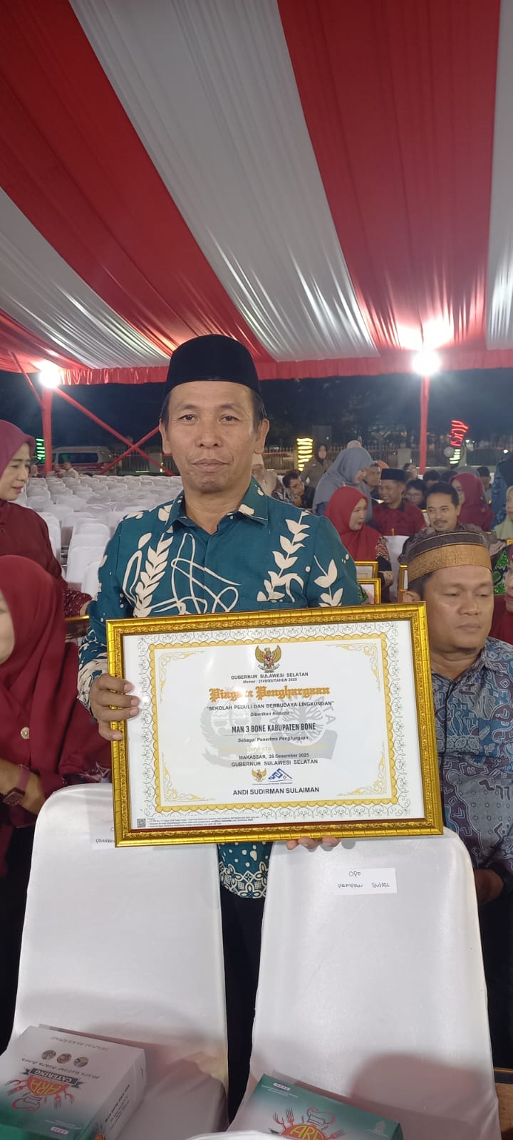 LAPPARIAJA, TRIBUNBONEONLINE.COM– Kabar membanggakan datang dari dunia pendidikan Kabupaten Bone. Madrasah Aliyah Negeri (MAN) 3 Bone resmi masuk dalam daftar nominasi penerima penghargaan Sekolah Adiwiyata Provinsi Sulawesi Selatan Tahun 2025. Hal ini tertuang dalam surat undangan dari Dinas Lingkungan Hidup dan Kehutanan Provinsi Sulawesi Selatan terkait penyerahan penghargaan adiwiyata yang dilaksanakan di Rumah Jabatan Gubernur Sulawesi Selatan, Makassar yang berlangsung pada Ahad (29/03/2026).