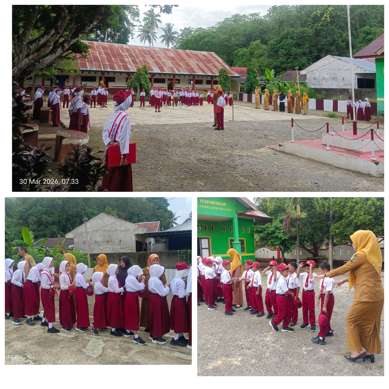 BAREBBO, TRIBUNBONEONLINE.COM – UPT SD Inpres 12/79 Wollangi, Kecamatan Barebbo, Kabupaten Bone, kembali melaksanakan upacara bendera perdana usai libur Ramadan. Kegiatan ini berlangsung di halaman sekolah dan diikuti oleh seluruh murid, guru, serta tenaga kependidikan dengan penuh khidmat.
