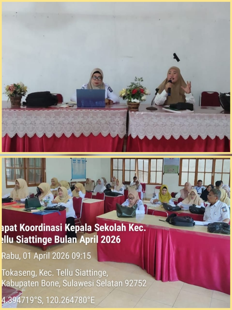 TELLU SIATTINGE, TRIBUNBONEONLINE.COM–Dalam rangka meningkatkan koordinasi dan efektivitas pelaksanaan program kerja Kelompok Kerja Kepala Sekolah (KKKS), KKKS Kecamatan Tellu Siattinge Kabupaten Bone menggelar rapat koordinasi di Kantor Eks UPT Pendidikan Kecamatan Tellu Siattinge, Rabu (01/04/2026).