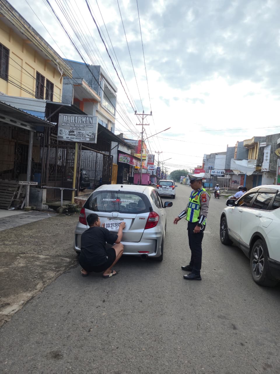 Dalam kegiatan ini personel Sat Lantas memberikan imbauan dan teguran agar selalu mematuhi rambu-rambu lalu lintas baik penggunaan TNKB kendaraan yang sesuai dan pengendara yang tidak menggunakan helm.