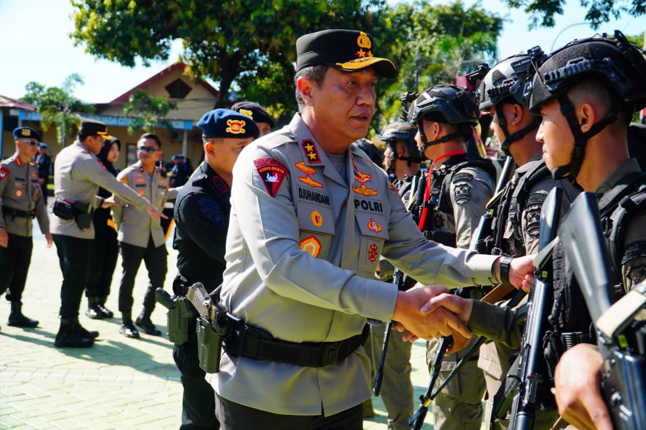 Apel tersebut dipimpin langsung Kapolda Sulsel Irjen Pol. Djuhandhani Rahardjo Puro, S.H., M.H., dan dihadiri Dansat Brimob Polda Sulsel Kombes Pol Muhammad Ridwan, S.IK., M.H., serta para pejabat utama Polda Sulsel.
